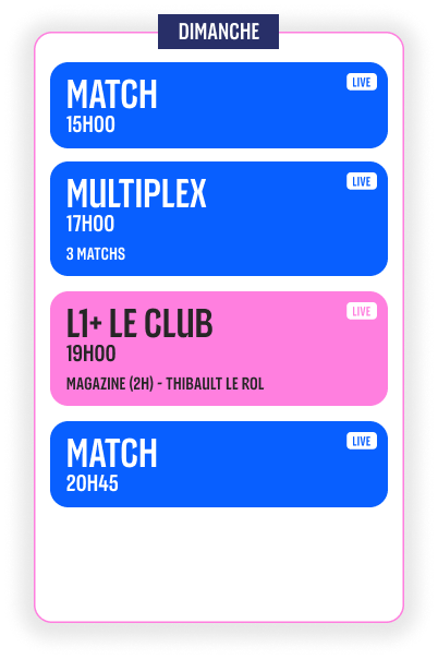 découvrir nos offresAvec Ligue 1+, choisissez parmi trois offres simples et adaptées à vos envies. Accédez à tous les matchs, tous les résumés et toute l’actualité de notre football.